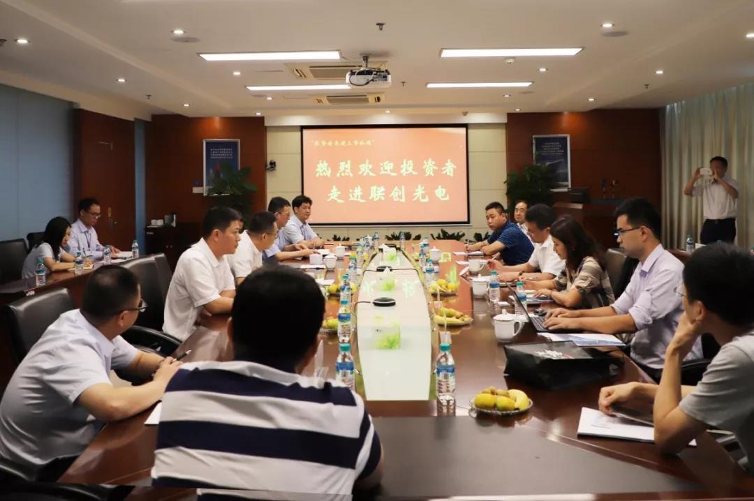 8月30日上午,中信建投證券股份有限公司組織的“投資者走進(jìn)上市公司”活動(dòng)在子公司聯(lián)創(chuàng)光電舉辦。股份公司董事長等領(lǐng)導(dǎo)熱情地接待了中信建投江西分公司副總經(jīng)理吳雄及來訪的二十多位投資者。