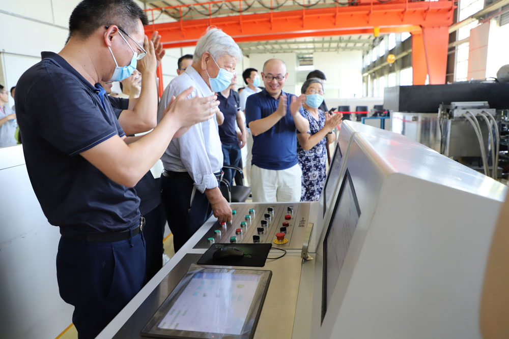 圖一:趙院士為首臺套設(shè)備交付前的可靠性測試按下啟動鍵